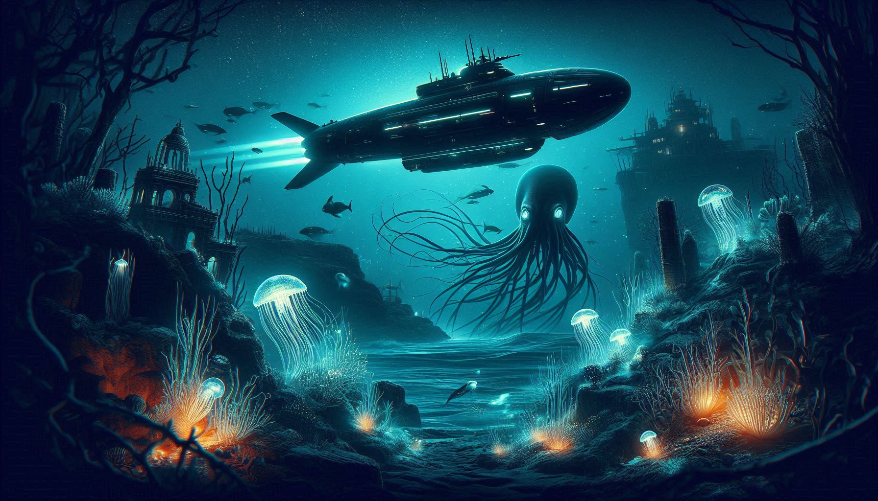 पनडुब्बी के अंदर की रोशनी से अर्जुन और उसकी टीम समुद्र के अंदर की अनोखी दुनिया को देखने लगे। चारों तरफ अद्भुत और विचित्र जीव तैर रहे थे। कुछ जीवों के शरीर से रोशनी निकल रही थी, जो उन्हें और भी रहस्यमय बना रही थी। अर्जुन ने इन जीवों को देखकर कहा, “यह तो वैसा ही है जैसे हम किसी दूसरी दुनिया में आ गए हों।”
